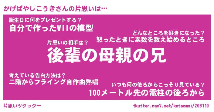 かげばやしこうきさんの片思いをツクッター!