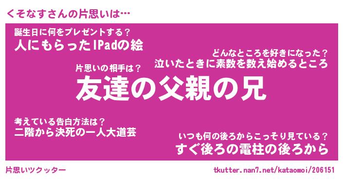 | 胡散臭い通販商品みたいなあだ名 | 『億万長者になれる水晶球…その名も「くそなす」』 |