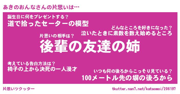 | ヘコむあだ名 | 『あきっふぃ~』『豆乳』『あきっ子』 |