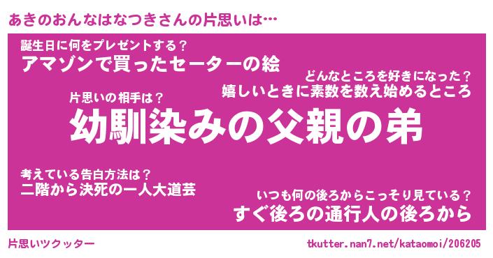 | 2回繰り返すあだ名 | 『あきあき』『ああきき』『かたかた』 |