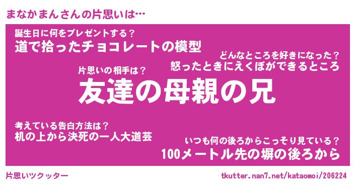 | 胡散臭い通販商品みたいなあだ名 | 『億万長者になれるブレスレット…その名も「まなかまん」』 |