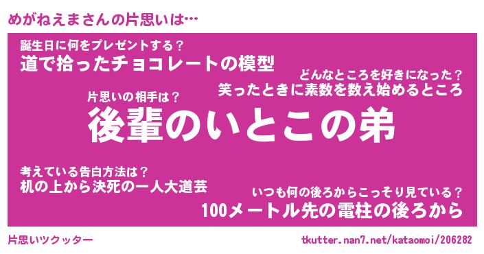 ヘコむあだ名 | 『めがにゅー』『牛乳』『めがを』 |