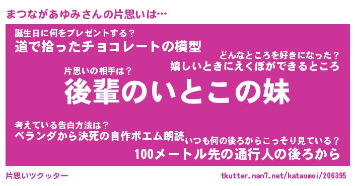ヘコむあだ名 | 『まつもー』『豆乳』『まつ太郎』 |