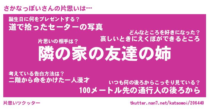 | ヘコむあだ名 | 『さかっふぃ~』『豆乳』『さかっぺ』 |