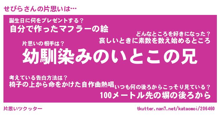 | ヘコむあだ名 | 『せびにゅー』『つくし』『せびお』 |