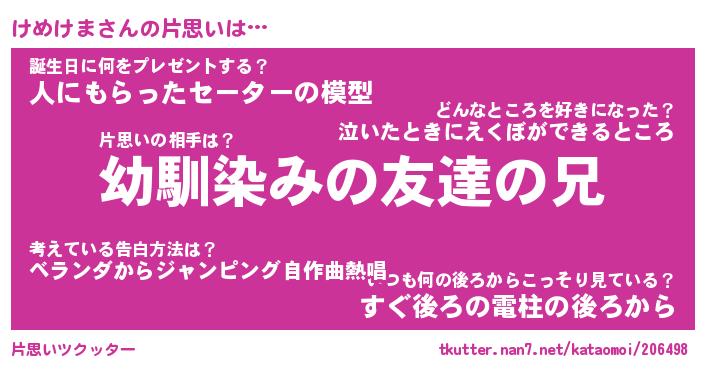 | ヘコむあだ名 | 『けめもー』『酢こんぶ』『けめを』 |