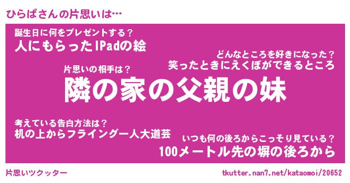 | 胡散臭い通販商品みたいなあだ名 | 『必ず成功するブレスレット…その名も「ひらば」』 |