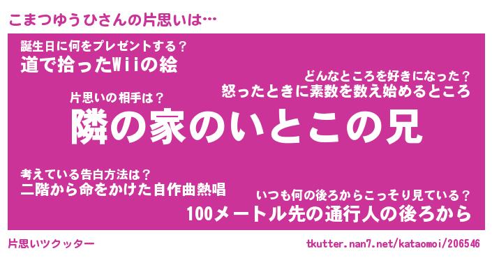 | ヘコむあだ名 | 『こまもー』『豆乳』『こまぷりん』 |