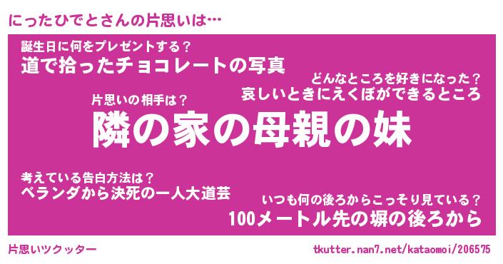 | 男性向けラノベタイトル風あだ名 | 『にったひでとの憂鬱』 |