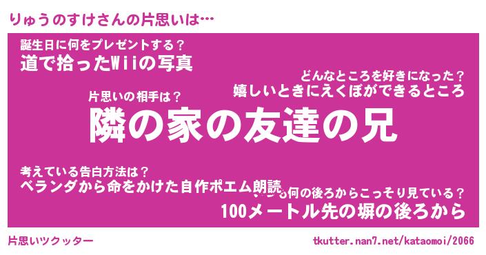 | 男性向けラノベタイトル風あだ名 | 『りゅうのすけの憂鬱』 |