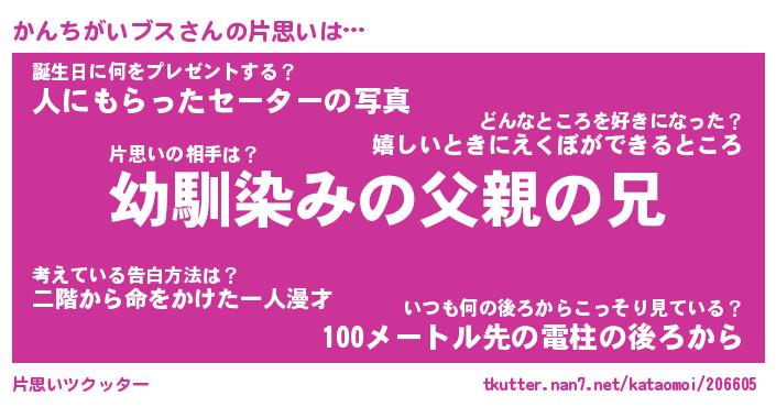 | 胡散臭い通販商品みたいなあだ名 | 『必ず成功する水晶球…その名も「かんちがいブス」』 |