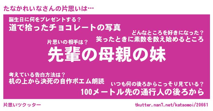| 2回繰り返すあだ名 | 『たなたな』『たたなな』『なあなあ』 |