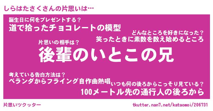 | 胡散臭い通販商品みたいなあだ名 | 『億万長者になれる水晶球…その名も「しらはたさく」』 |