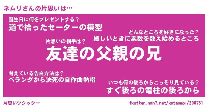 | ヘコむあだ名 | 『ネムふぇ~』『豆乳』『ネム太郎』 |
