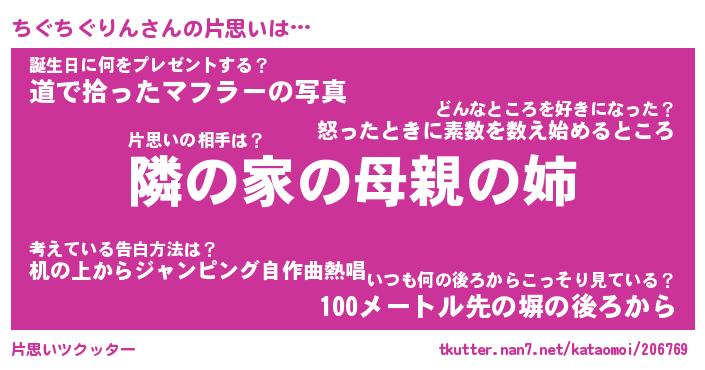 | ヘコむあだ名 | 『ちぐふぇ~』『豆乳』『ちぐっ子』 |