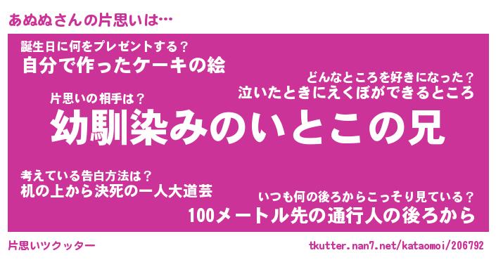 | ヘコむあだ名 | 『あぬもー』『つくし』『あぬっぺ』 |