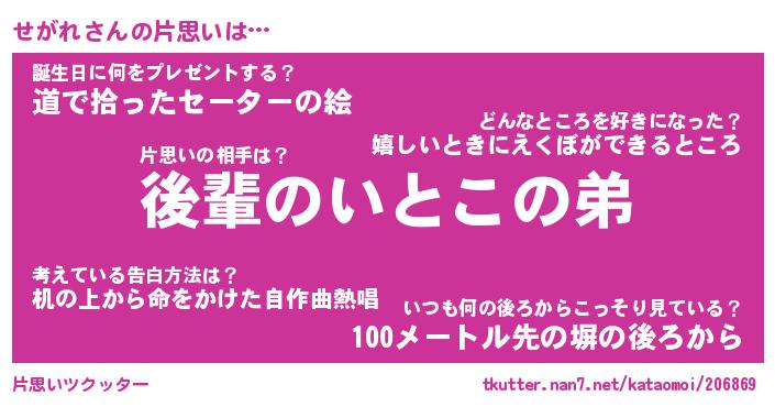 ヘコむあだ名 | 『せがにゅー』『牛乳』『せがぷりん』 |