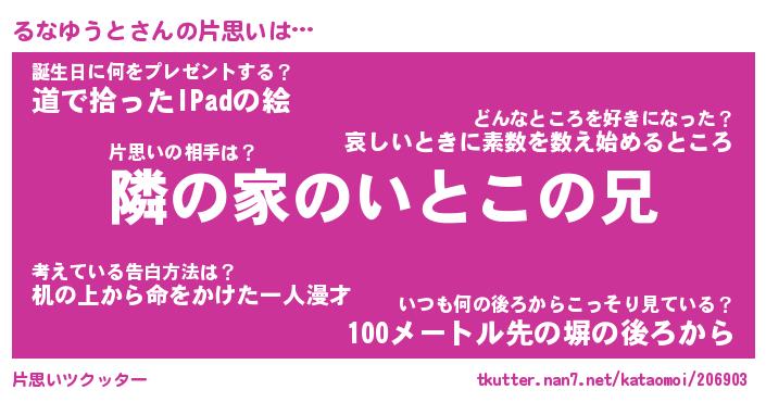 | 胡散臭い通販商品みたいなあだ名 | 『必ず成功する水晶球…その名も「るなゆうと」』 |