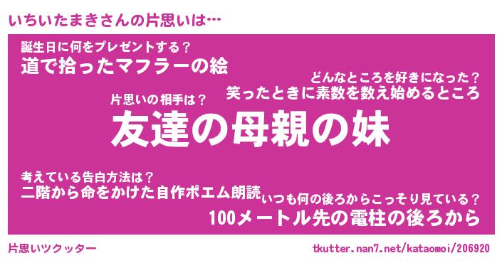 | ヒーロー風カッコイイあだ名 | 『スーパーイチイタマキ』『魔戒騎士イチ』 |