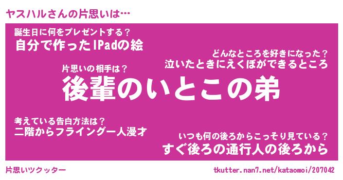 意味不明あだ名 | 『ペロリンヤスハル』『永久保存ヤスハル』 |