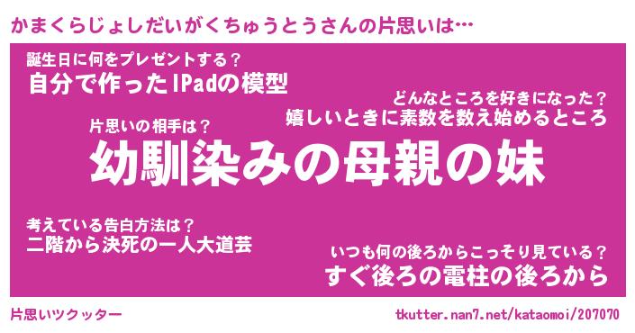 女子向けラノベタイトル風あだ名 | 『(仮)かまくらじょしだいがくちゅうとうのやんごとなき事情』 |