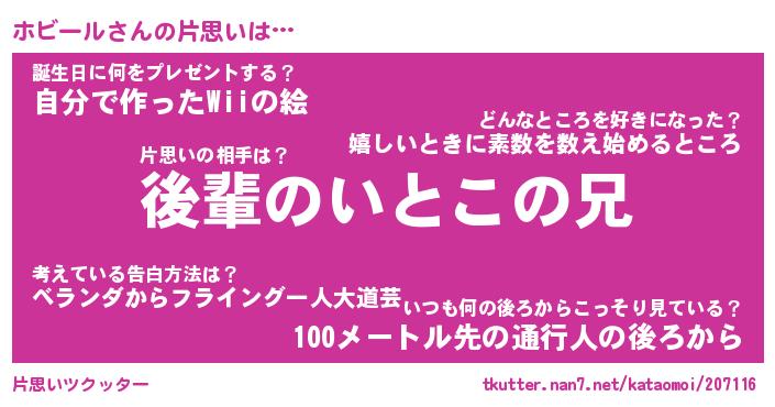 ヘコむあだ名 | 『ホビにゅー』『つくし』『ホビっ子』 |