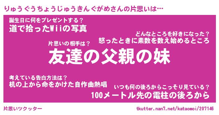 意味不明あだ名 | 『ペロリンりゅうぐうちょうじゅうきんぐがめ』 |