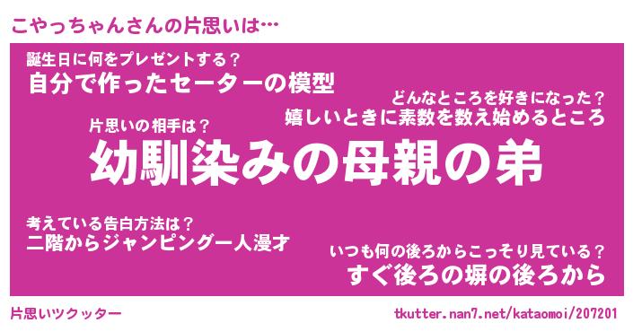 女子向けラノベタイトル風あだ名 | 『(仮)こやっちゃんのやんごとなき事情』 |