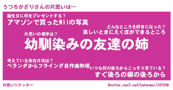ヘコむあだ名 | 『うつっふぃ~』『牛乳』『うつっぺ』 |