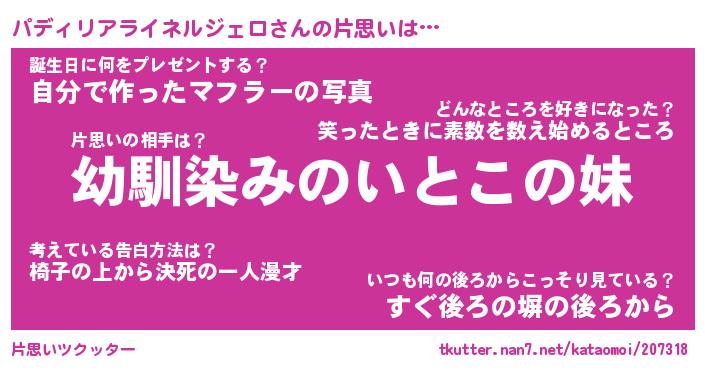 | 男性向けラノベタイトル風あだ名 | 『パディリアライネルジェロの憂鬱』 |