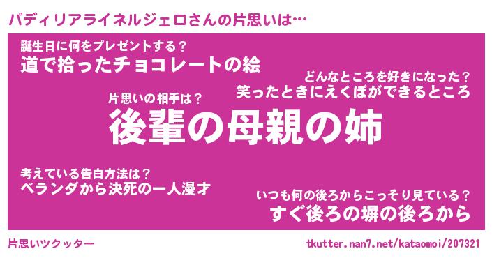 | 女子向けラノベタイトル風あだ名 | 『パディリアライネルジェロ姫と円卓の騎士』 |
