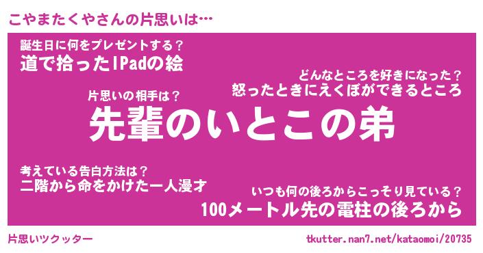 | 男性向けラノベタイトル風あだ名 | 『こやまたくやの憂鬱』 |