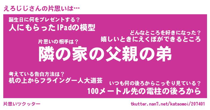 | ヘコむあだ名 | 『えろふぇ~』『つくし』『えろお』 |
