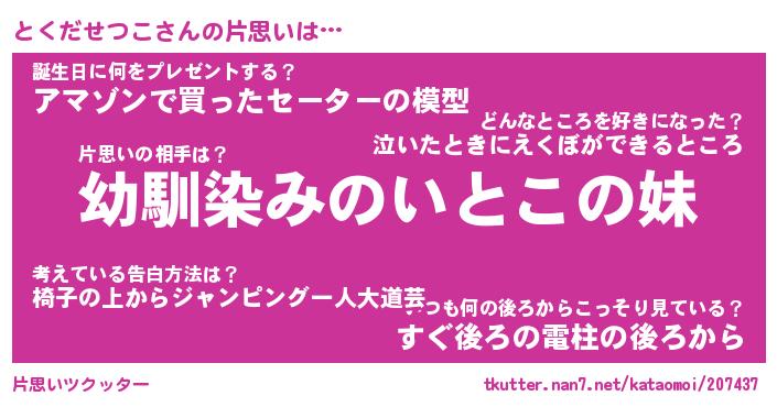 | 男性向けラノベタイトル風あだ名 | 『とくだせつこの憂鬱』 |