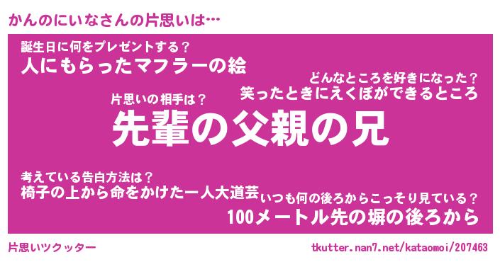 | 胡散臭い通販商品みたいなあだ名 | 『モテモテ間違いなし水晶球…その名も「かんのにいな」』 |