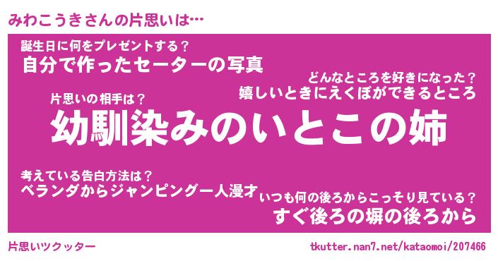 | ヘコむあだ名 | 『みわもー』『つくし』『みわお』 |