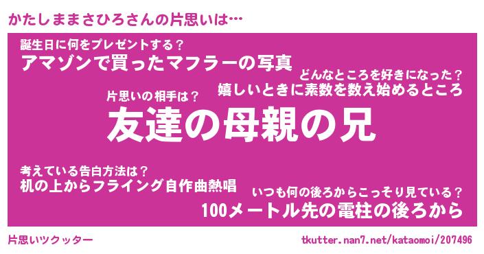 | 胡散臭い通販商品みたいなあだ名 | 『億万長者になれるブレスレット…その名も「かたしままさひろ」』 |