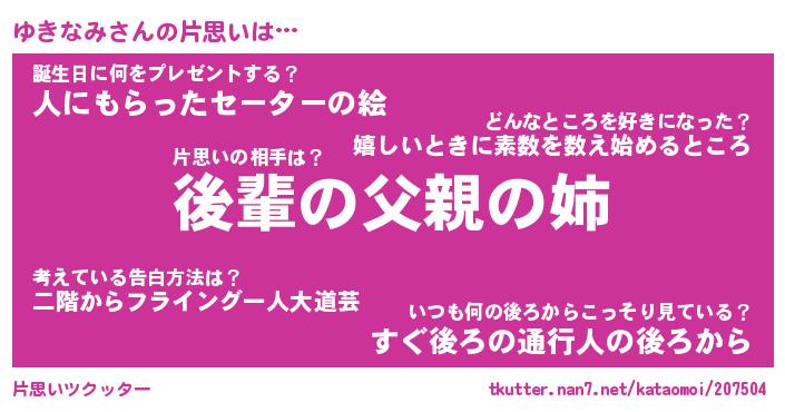 | ファンタジー風あだ名 | 『ユキフェル』『エターナルユキナミー』 |