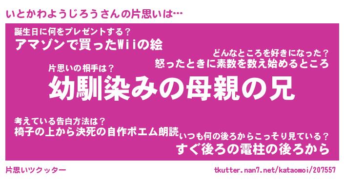 | 胡散臭い通販商品みたいなあだ名 | 『必ず成功するブレスレット…その名も「いとかわようじろう」』 |