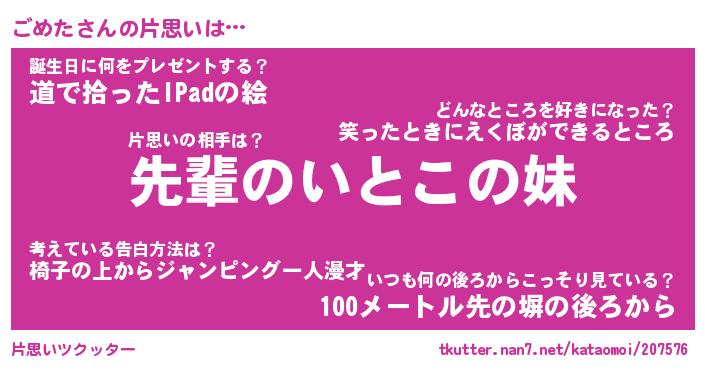 | 胡散臭い通販商品みたいなあだ名 | 『モテモテ間違いなし水晶球…その名も「ごめた」』 |