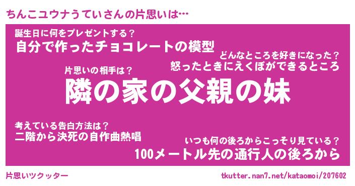 | 胡散臭い通販商品みたいなあだ名 | 『必ず成功するブレスレット…その名も「ちんこユウナうてい」』 |