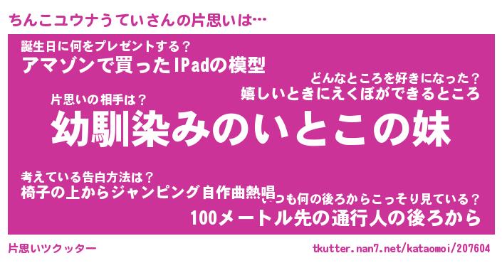 | 恥ずかしいあだ名 | 『プリティーちんこユウナうてい』 |