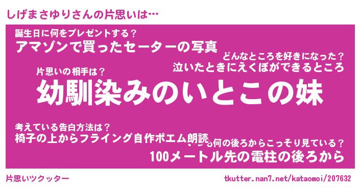 | 男性向けラノベタイトル風あだ名 | 『しげまさゆりの憂鬱』 |