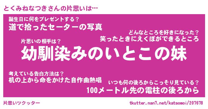 | 胡散臭い通販商品みたいなあだ名 | 『必ず成功する霊験あらたかなお札…その名も「とくみねなつき」』 |