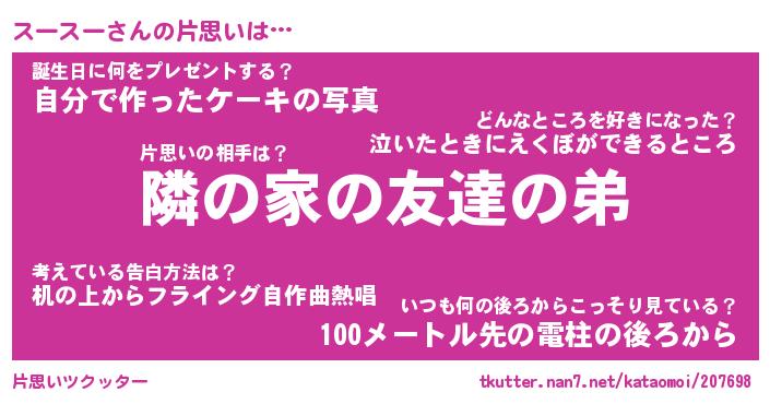 | ヒーロー風カッコイイあだ名 | 『スーパースースー』『幻影騎士スー』 |