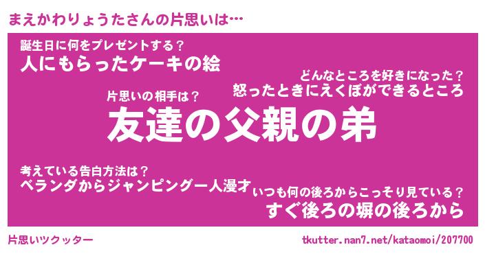 | 意味不明あだ名 | 『ペロリンまえかわりょうた』 |