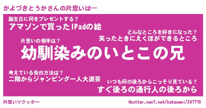 | 恥ずかしいあだ名 | 『プリティーかよづきとうか』『かよちん』 |