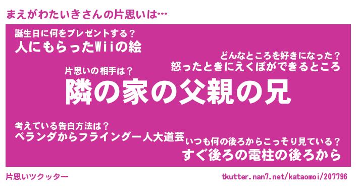 | 胡散臭い通販商品みたいなあだ名 | 『モテモテ間違いなし水晶球…その名も「まえがわたいき」』 |
