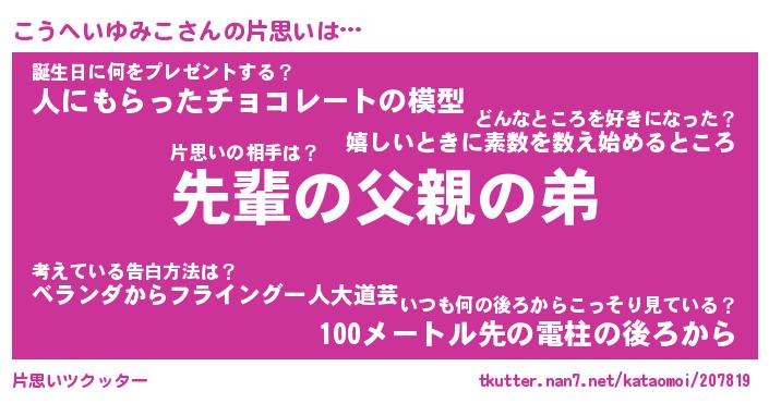 | 男性向けラノベタイトル風あだ名 | 『コウヘイユミコアートオンライン』 |