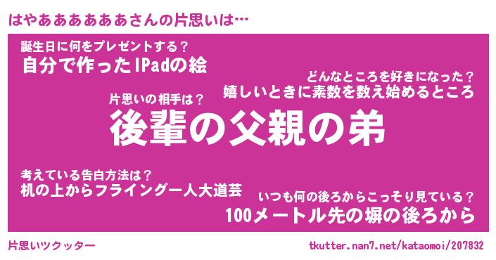 | ピコ太郎風あだ名 | 『ハコ一郎』『ピハ太郎』『ハヤ二郎』 |